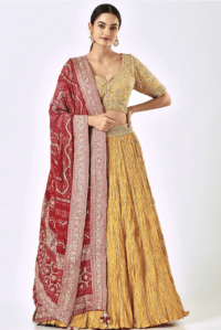 Mustard Crushed Silk Lehenga Set