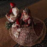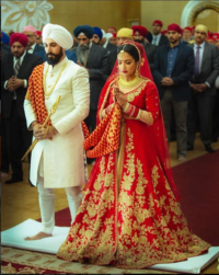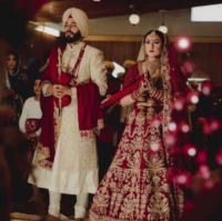 Our California client in dark red wedding lehenga