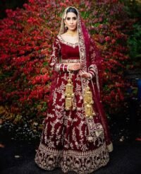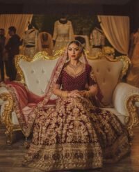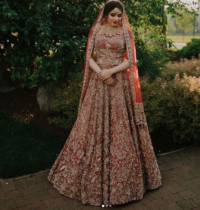 Our California client in a wine color wedding lehenag