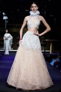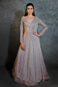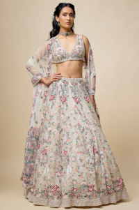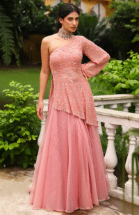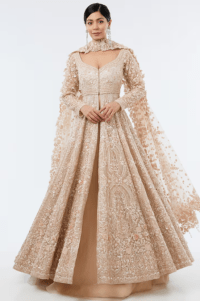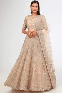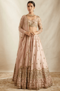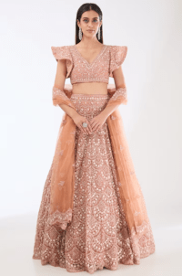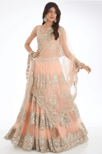 Peach Net Sequins & Dori Embroidered Lehenga Set