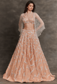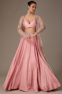 Peach Pink Silk Hand Embroidered Cape Lehenga Set