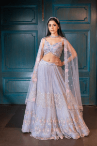 Periwinkle Blue Embroidered Jacket Lehenga Set