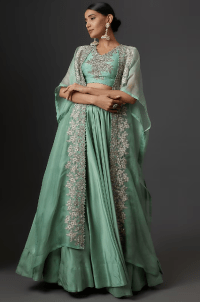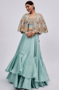 Powder Blue Silk & Organza Embroidered Jacket Lehenga Set