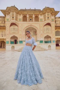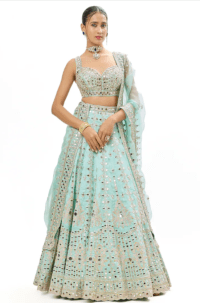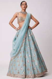 Powder Blue Silk organza Crystal & Sequins Embroidered Lehenga Set
