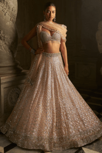 Powder Peach Net Sequins Embroidered Lehenga Set