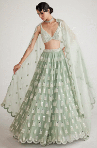 Powder Mint Organza Pearl Hand Embroidered Lehenga Set