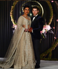 Priyanka Chopra In Smoke Grey Dress During Her Second Wedding Reception