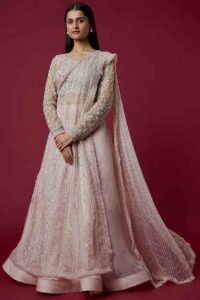 Powder Pink Organza Silk Hand Embroidered Lehenga Set