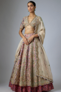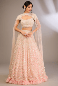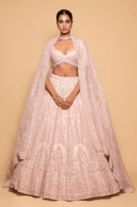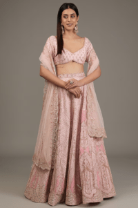 Powder Pink Silk Hand & Machine Embroidered Lehenga Set