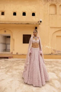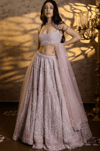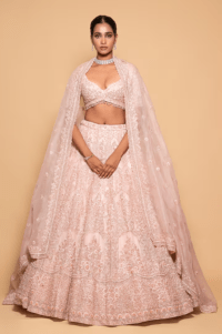 Powder Pink Net Crystal Embroidered Lehenga Set