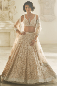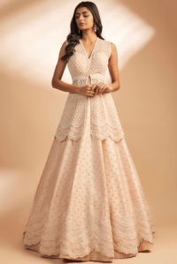Powder Pink Organza Scalloped Moti Embroidered Lehenga Set