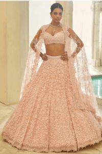 Powder Pink Net Three Dimensional Embroidered Lehenga Set
