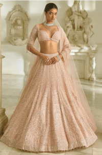 Powder Pink Organza Sequins Embroidered Lehenga Set
