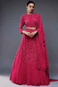 Rani Pink Chiffon Sequins Embroidered Lehenga Set