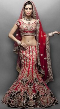 Red & Maroon Combination Bridal Lengha with Zardozi Embroidery(Traditioanal Lehenga-99)