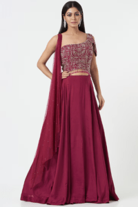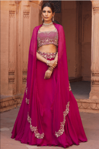Raspberry Pink Lehenga Set With Hand Embroidery