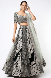 Black Velvet Floral Embroidered Lehenga Set