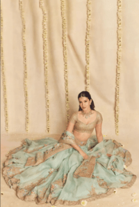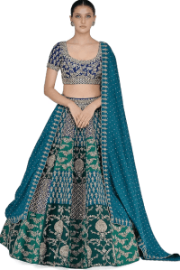 Blue & Green Embroidered Lehenga Set