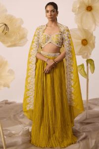 Yellow Georgette Cape Lehenga Set