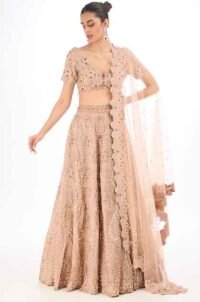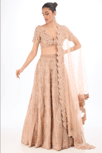 Blush Pink Organza Silk Moti Embroidered Lehenga Set