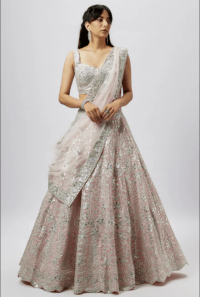 Blush Pink Organza Embroidered Lehenga Set