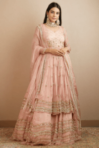 Blush Pink Organza Tiered Lehenga Set