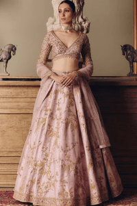 Blush Pink Raw Silk Swarovski Embroidered Lehenga Set