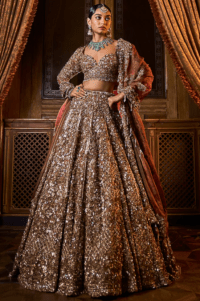 Bronze Tissue Organza Sequins & Beads Embroidered Lehenga Set
