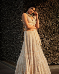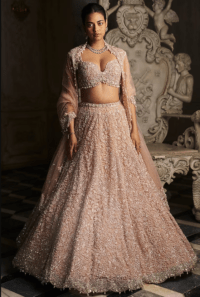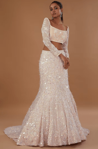 Champagne Net Sequins & Beads Embellished Lehenga Set