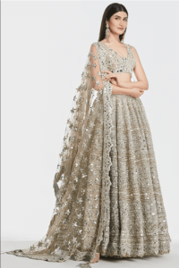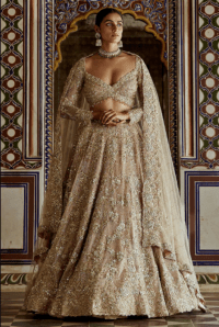 Champagne Net Thread Embroidered Lehenga Set