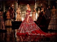 Deepika Padukone In A Blood Red Color Trail Bridal Lehenga
