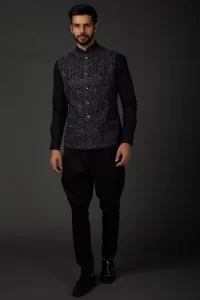 Indigo Blue Machine Embroidered Bundi Jacket