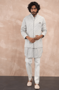 Ice Grey Georgette Hand Embroidered Nehru Jacket Set