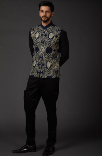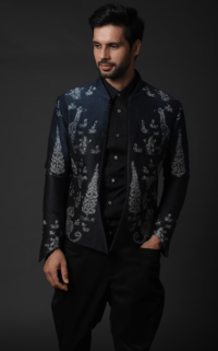 Indigo Blue Embroidered Bandhgala Jacket