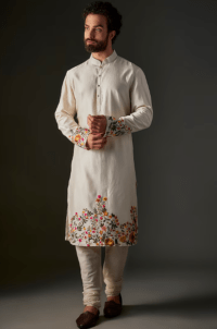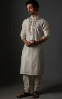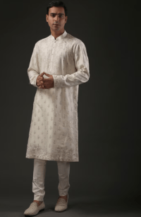 Ivory Chanderi Silk Zari Embroidery Kurta