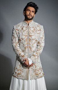 Red & Gold Silk Zardosi Embroidered Wedding Sherwani