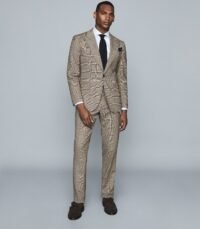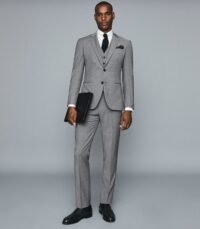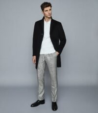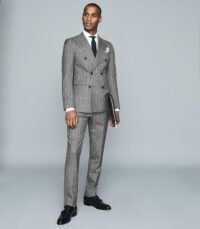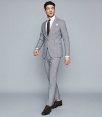 REISS GREY COLOR SLIM FIT CHECKED TROUSERS