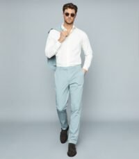 REISS LIGHT BLUE COLOR COTTON-BLEND SLIM-FIT TROUSERS