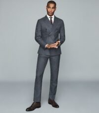 REISS HUSTLE BLUE CHECK WOOL-BLEND TROUSERS