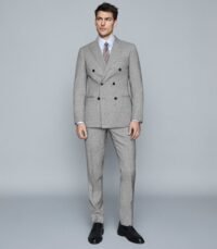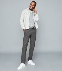 REISS GREY COLOR SLIM FIT TRAVEL TROUSERS