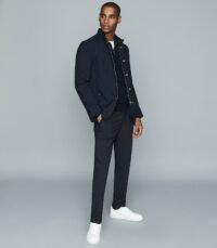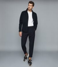 REISS NAVY BLUE COLOR SLIM FIT TRAVEL TROUSERS