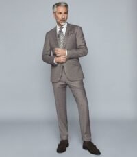 REISS GREY COLOR BRUSHED SLIM FIT TROUSERS