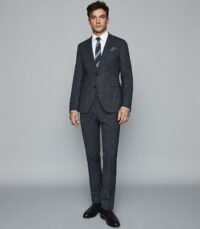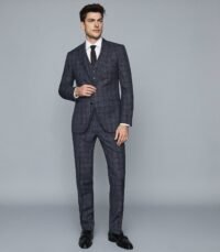 REISS INDIGO COLOR MODERN FIT CHECKED TROUSERS