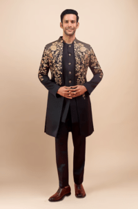 Black self all over embroiled sherwani with matt finish