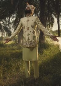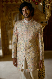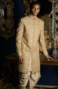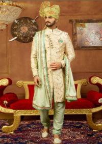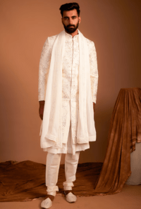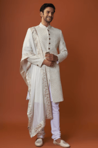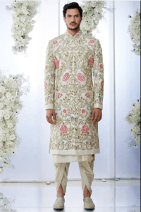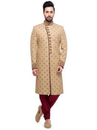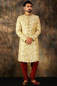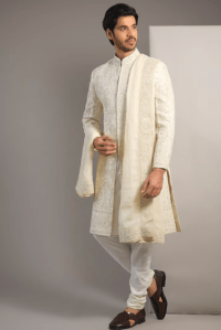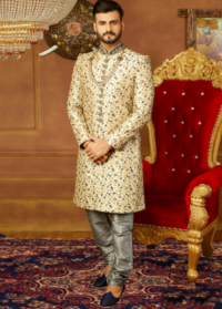 Cream Embroidered Sherwani Set