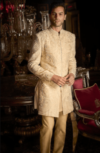 Cream Embroidered Groom Sherwani