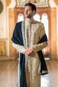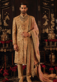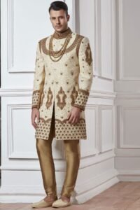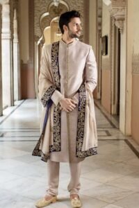 beige color wedding sherwani