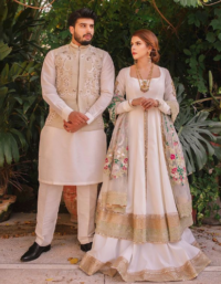Beige color floral embroidered sherwani