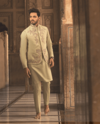 Beige gold embroidered sherwani set