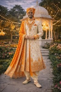 Off White Dori Embroidered Raw Silk Wedding Sherwani